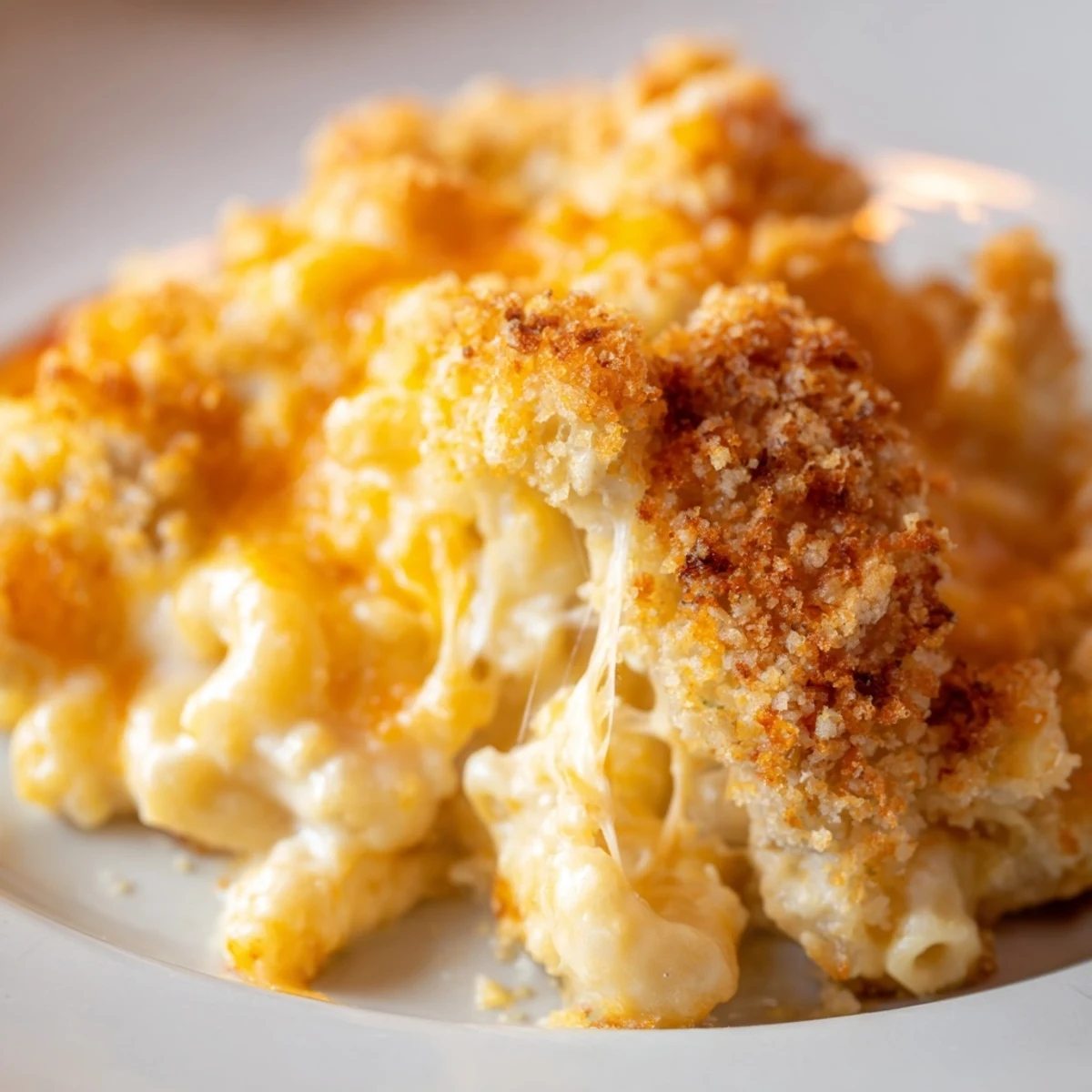 The homemade cheese sauce starts with a classic roux, then enriched with whole milk and seasonings like Dijon mustard, garlic powder, and paprika for depth. Baking transforms the creamy interior into bubbly perfection while the topping turns beautifully crisp. Letting it rest for five minutes before serving ensures that ideal, fork-cohesive texture.